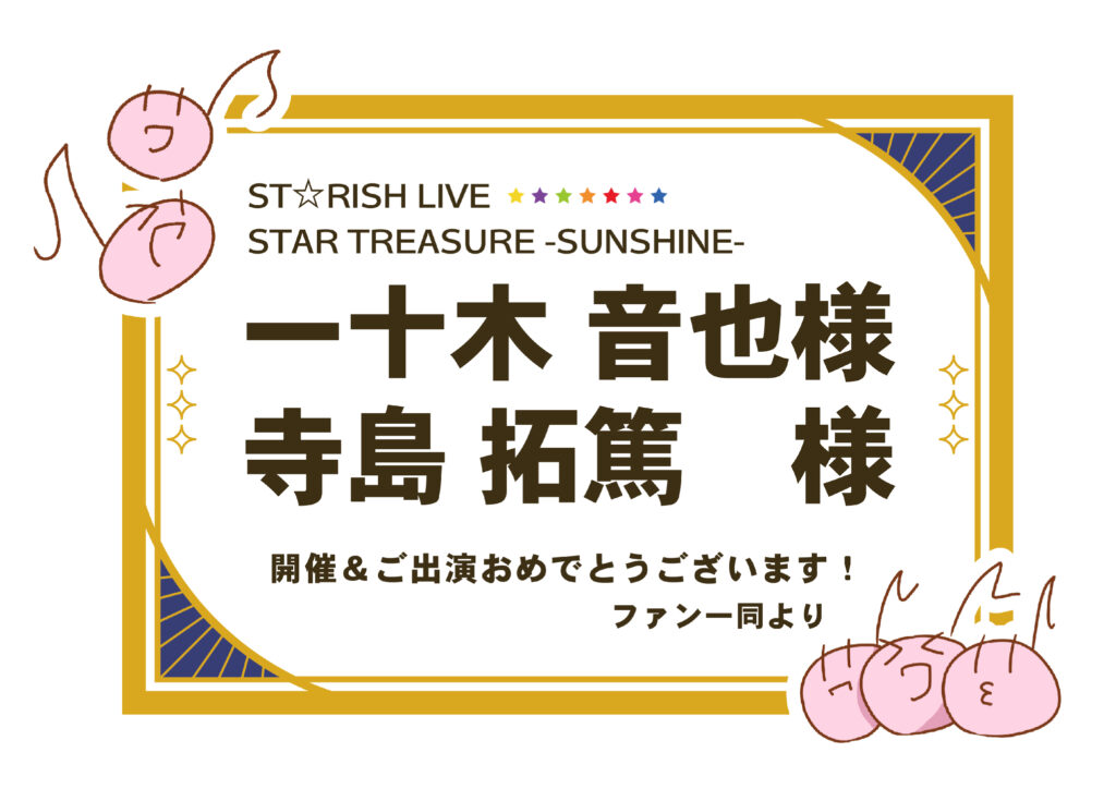 今回、はちみんさんと一緒に音也くんと寺島さん……そして春歌ちゃん~~~……‼にも向けたフラスタを出させていただきました。